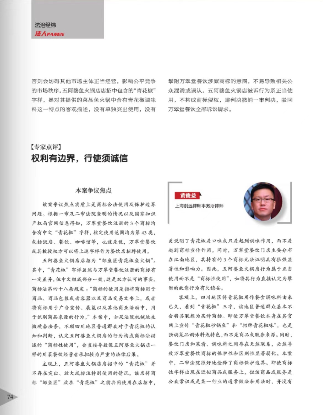 甘孜辉知简讯 | 辉知队黄俊益律师应“法治日报”旗下杂志邀请,就“青花椒”案发表专家点评