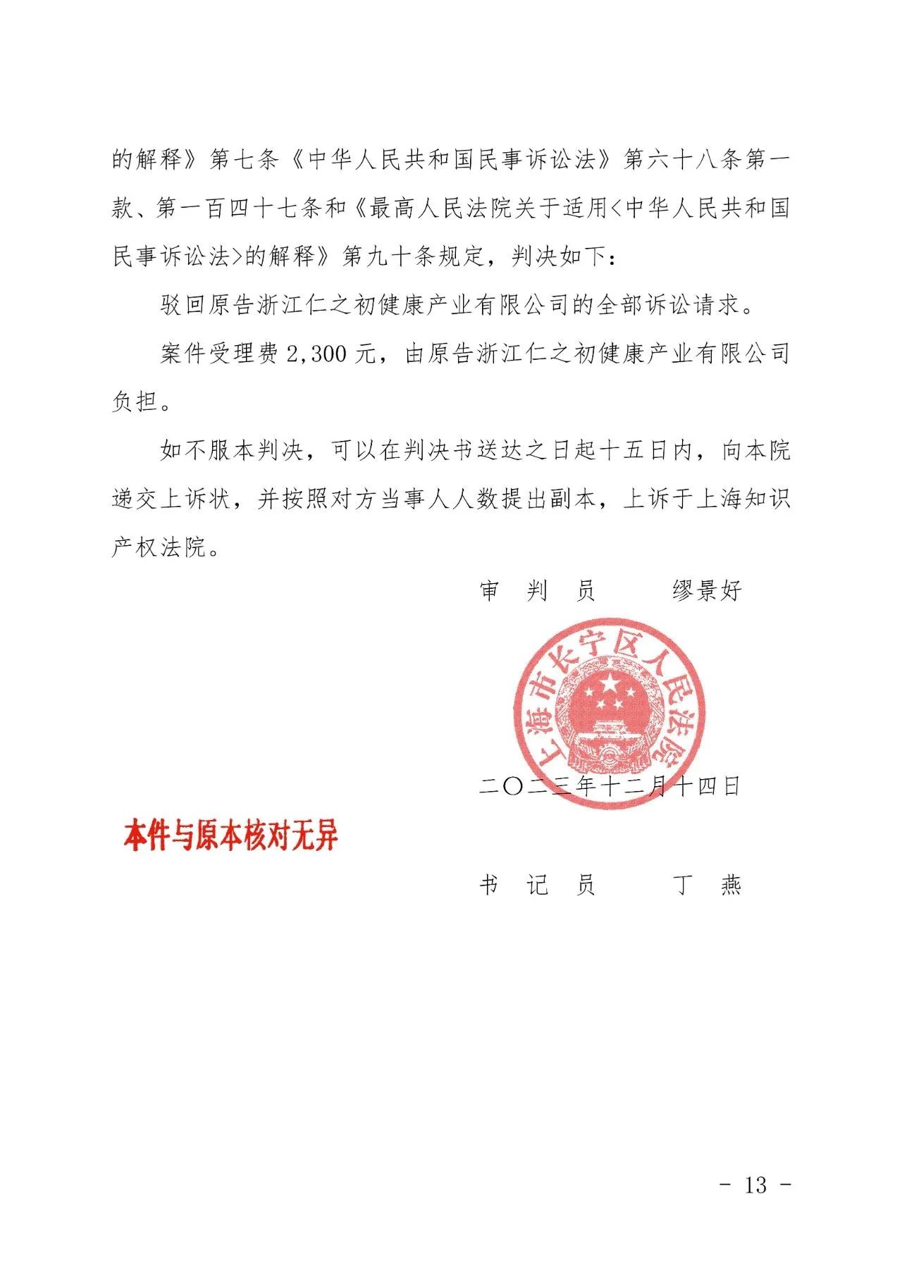 甘孜辉知胜诉佳讯 | “仁之初健康”著作权及不正当竞争纠纷案,法院:驳回全部诉讼请求!